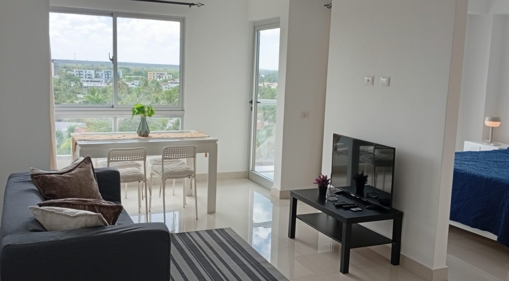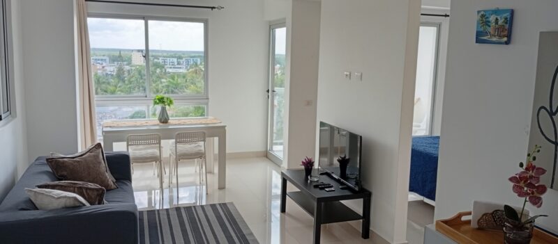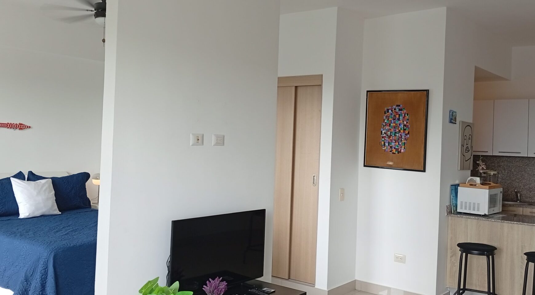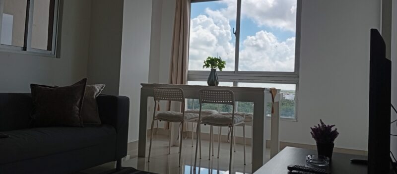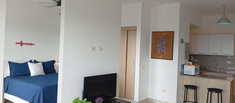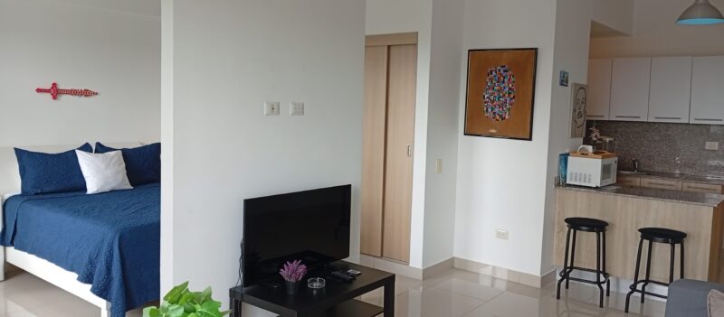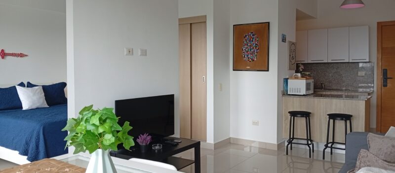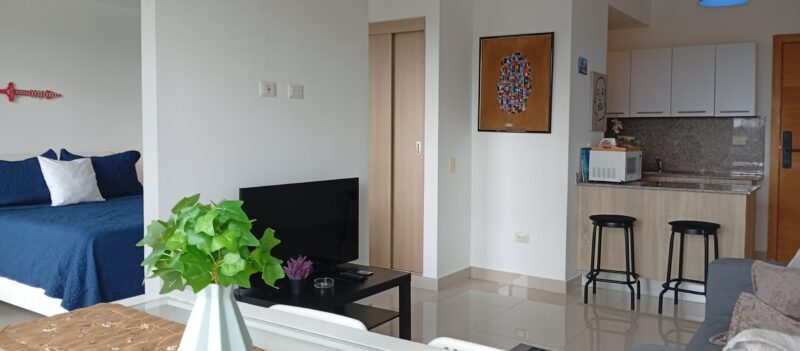 • Sala – comedor con aire acondicionado, abanico de techo y televisor