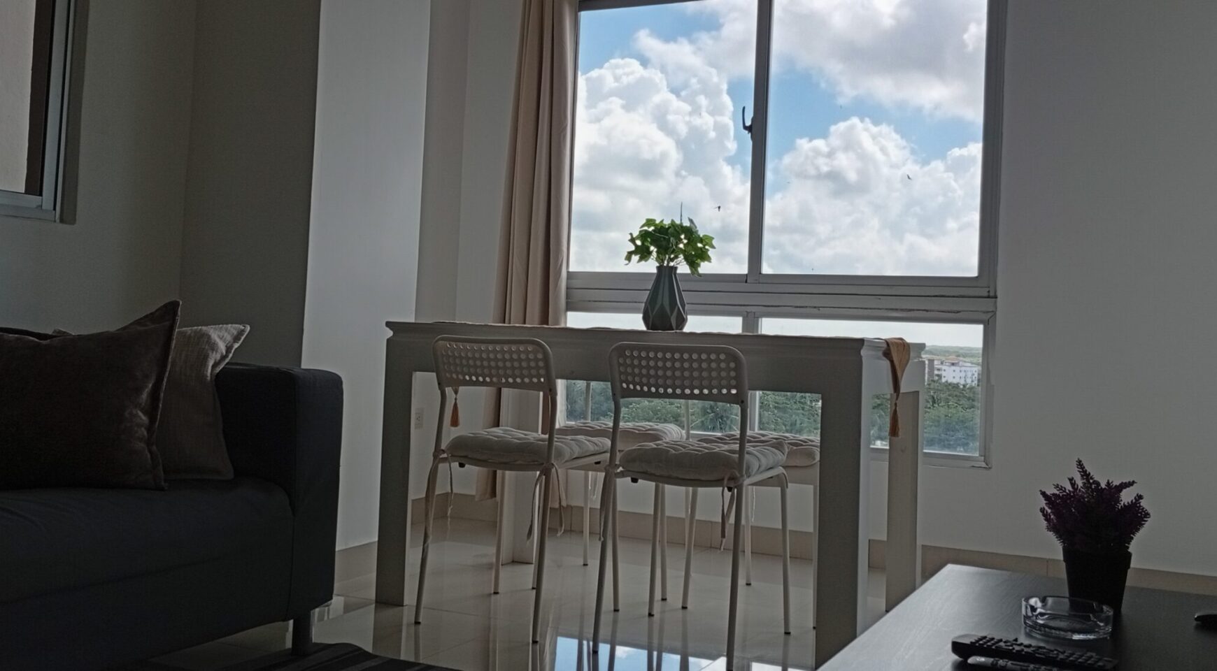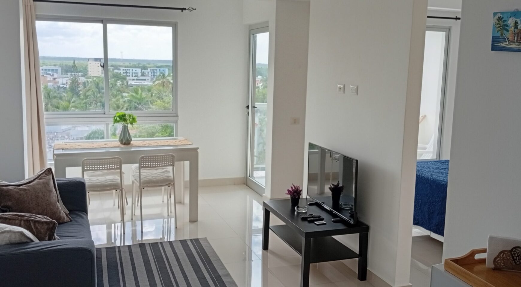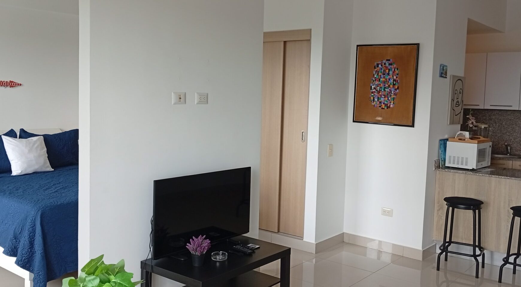 • Sala – comedor con aire acondicionado, abanico de techo y televisor