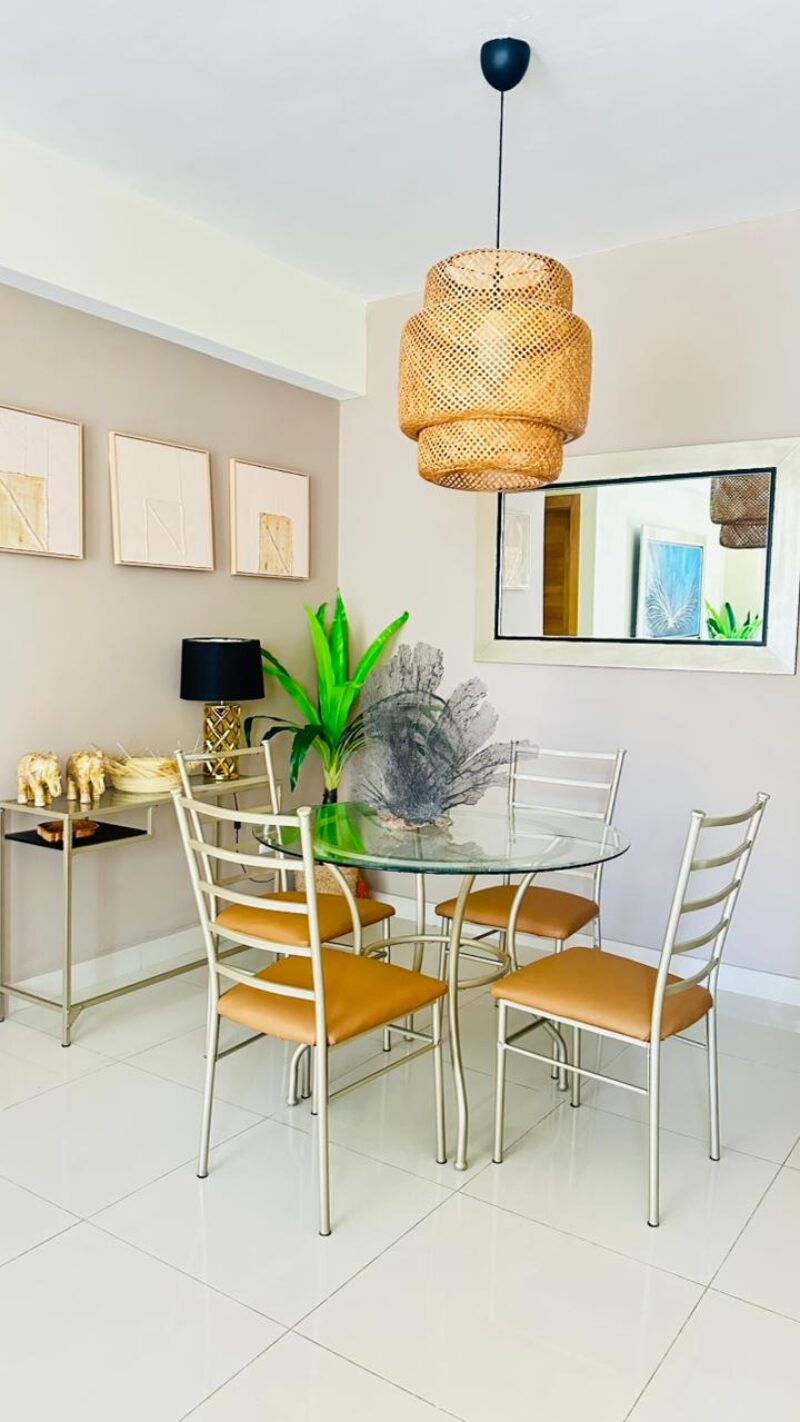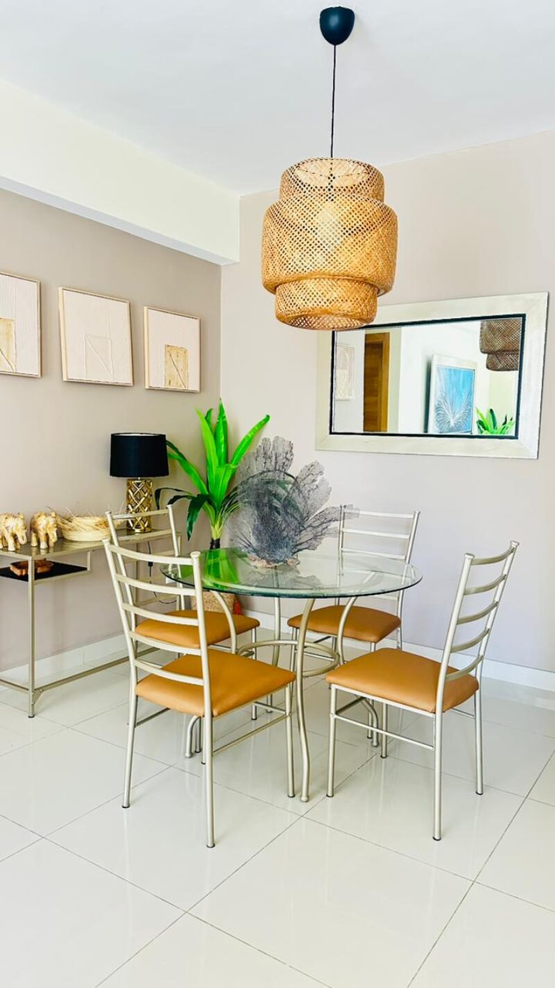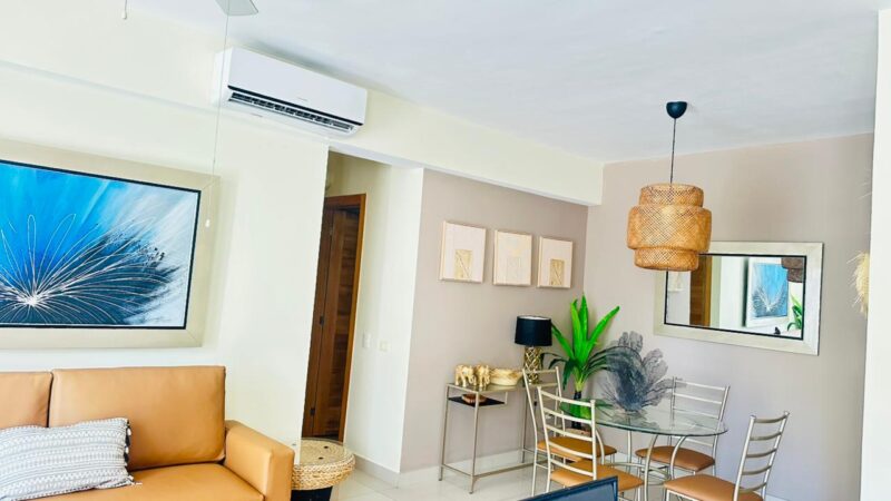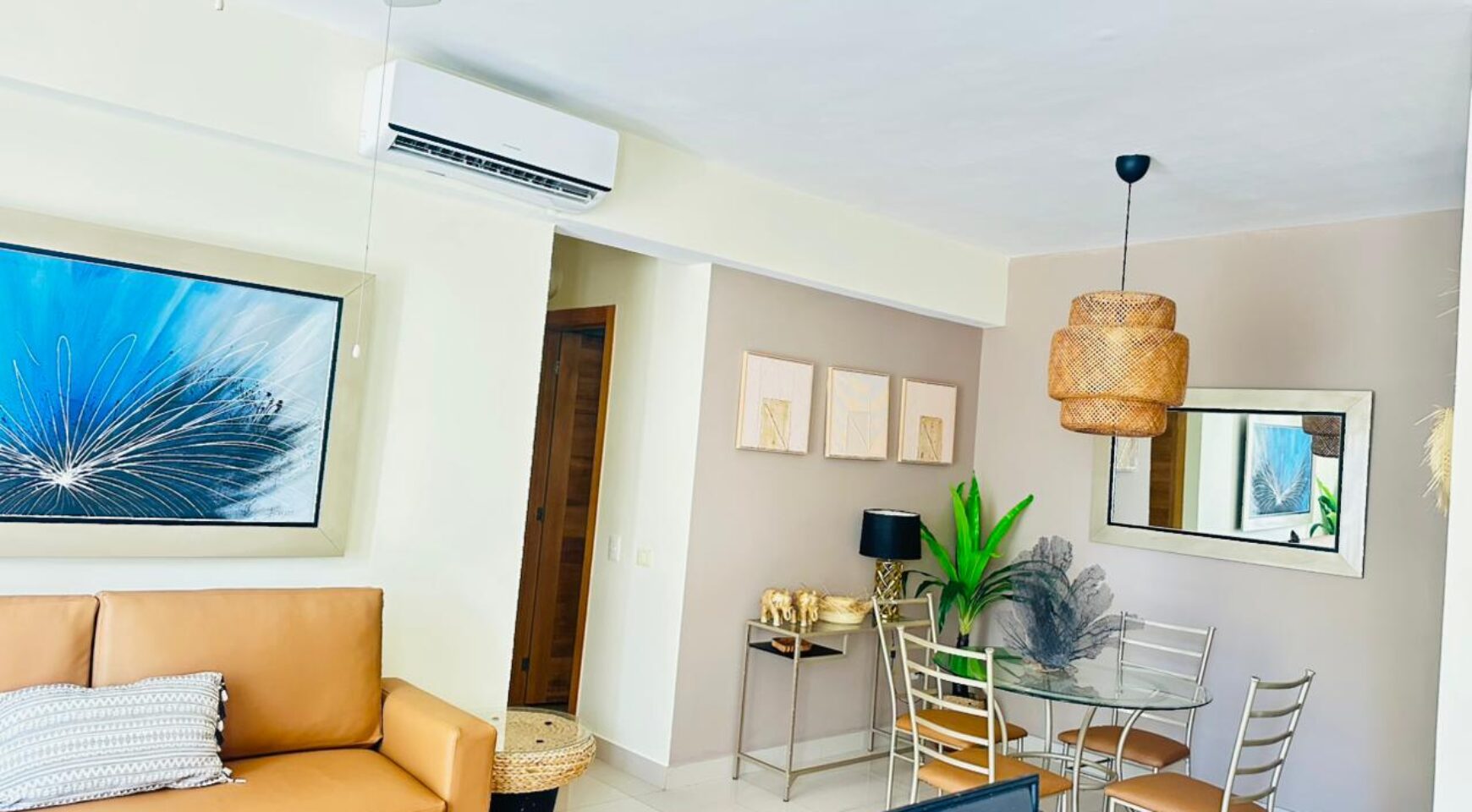 • Sala – comedor con aire acondicionado, abanico de techo y televisor
