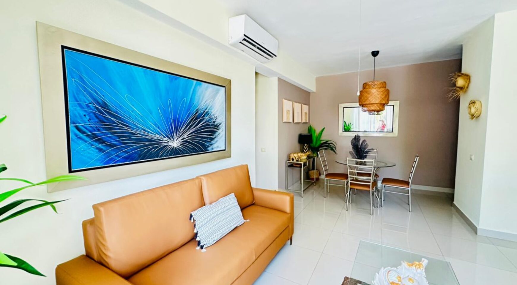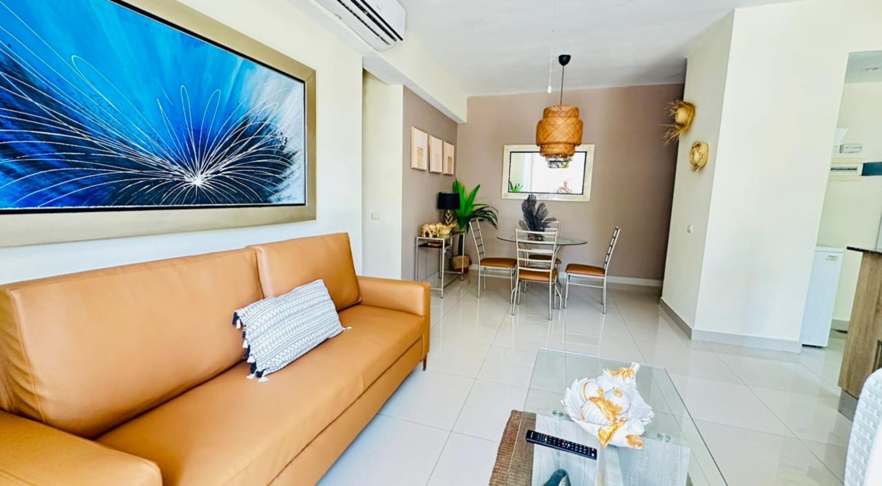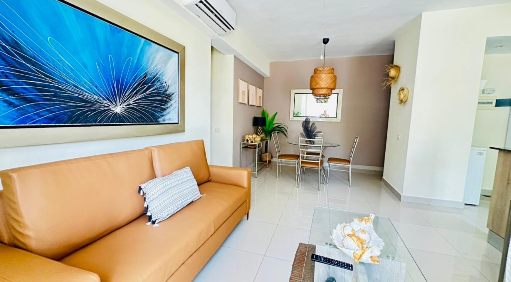 • Sala – comedor con aire acondicionado, abanico de techo y televisor