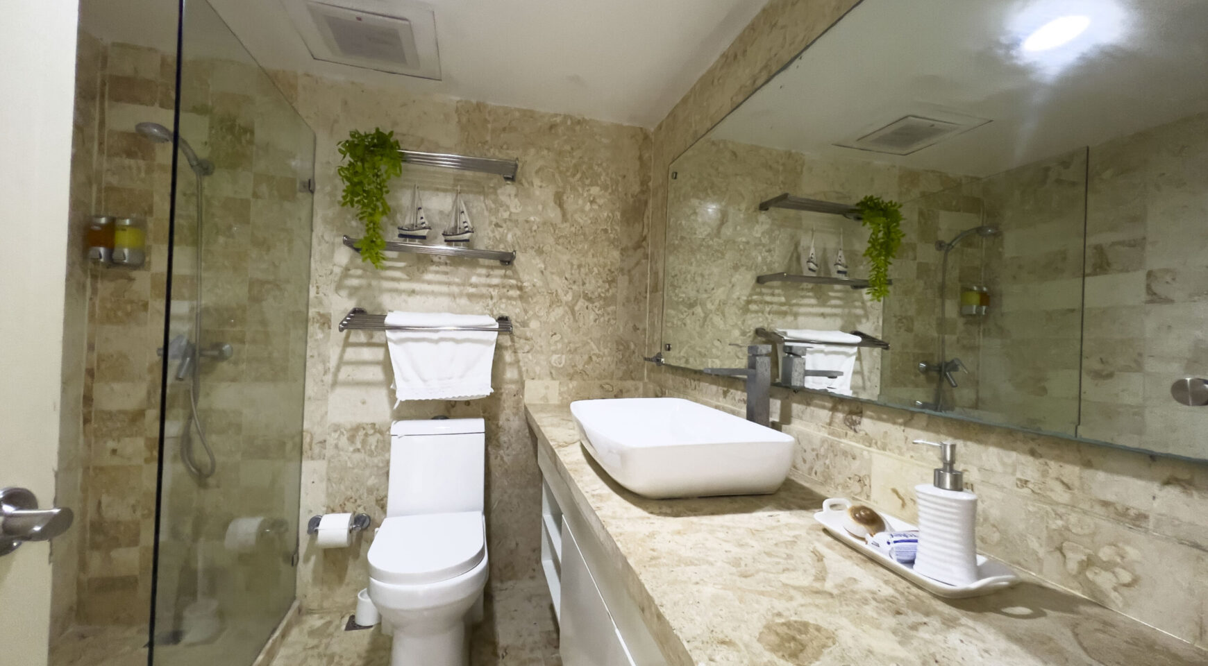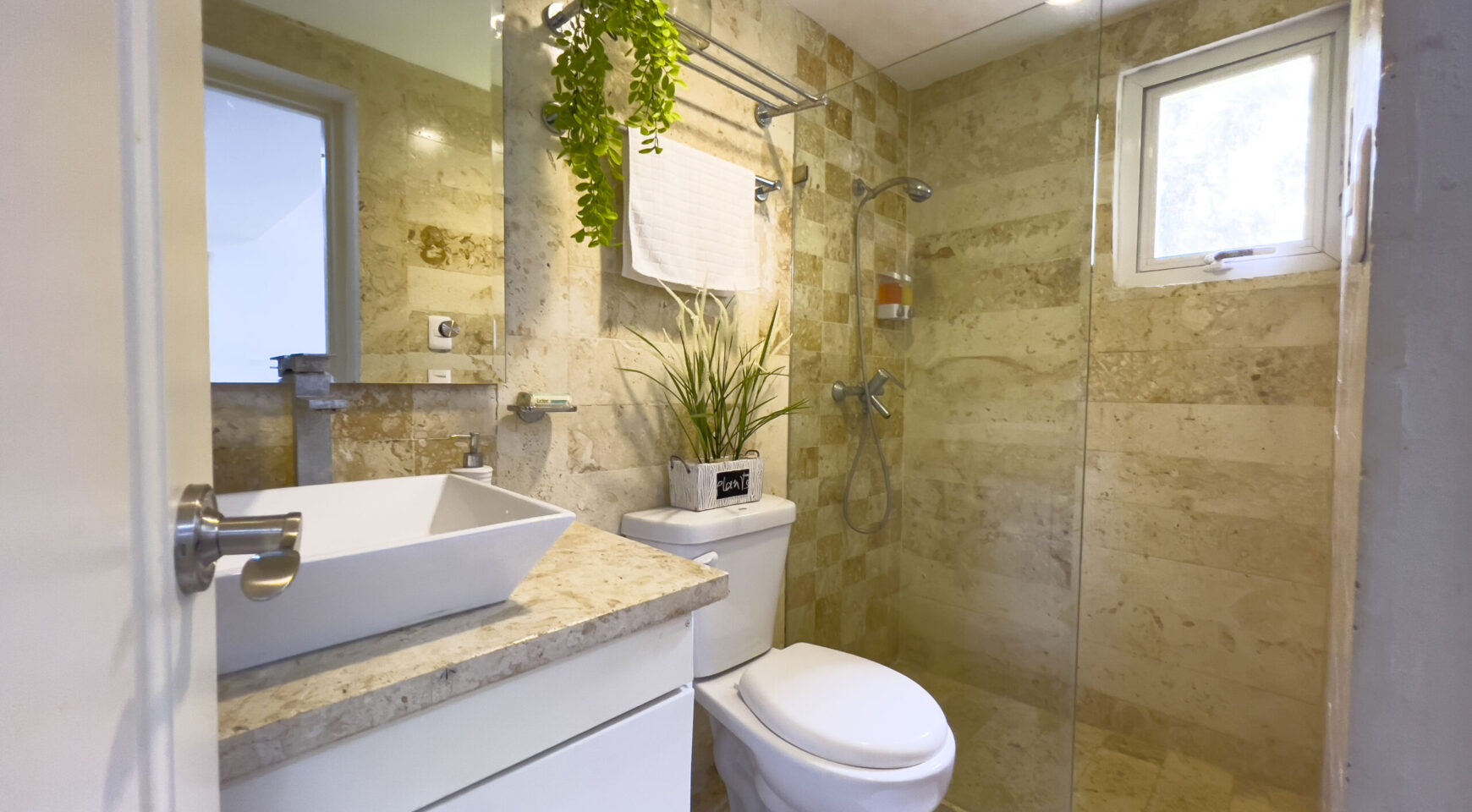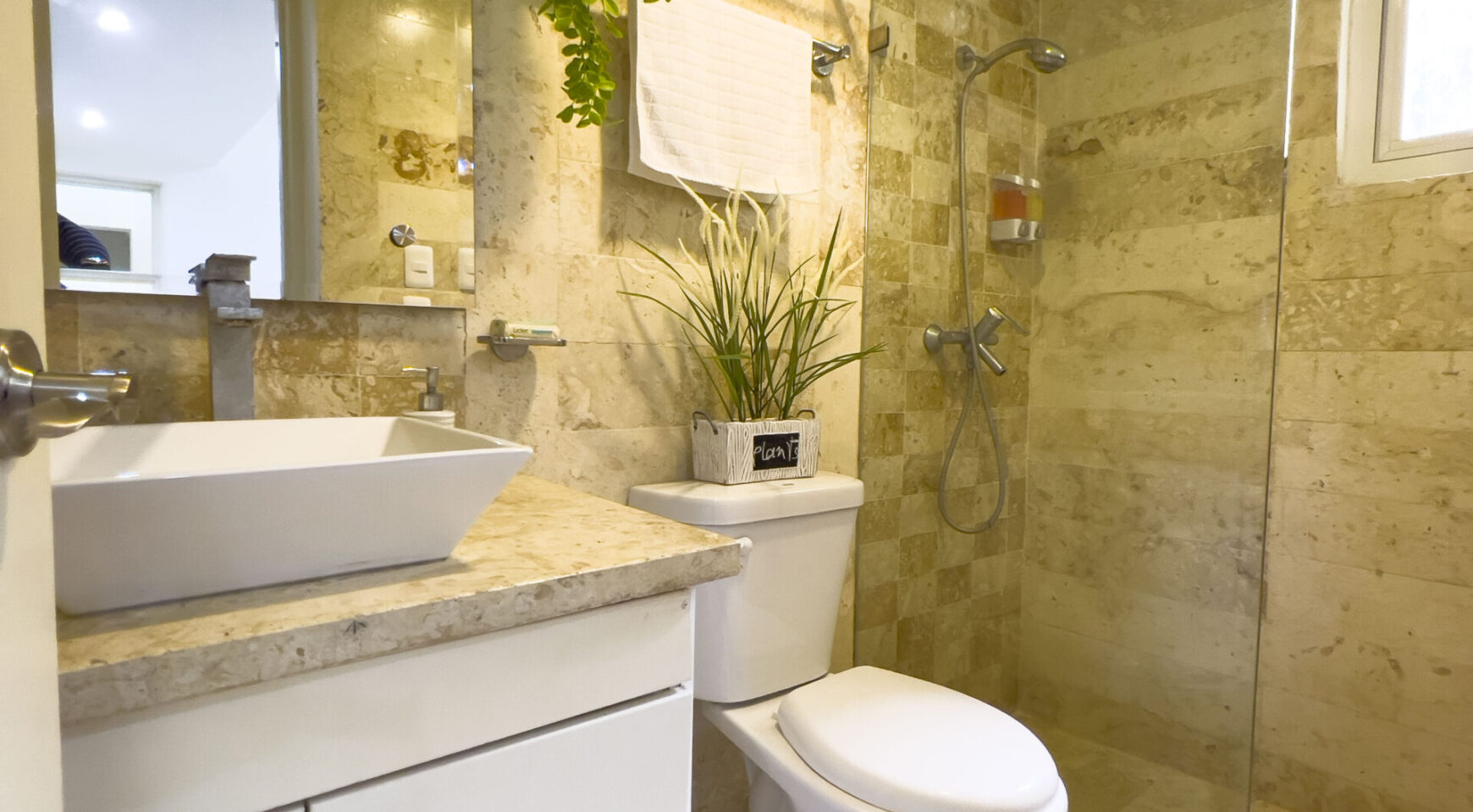 • 3 baños completos en piedra coralina