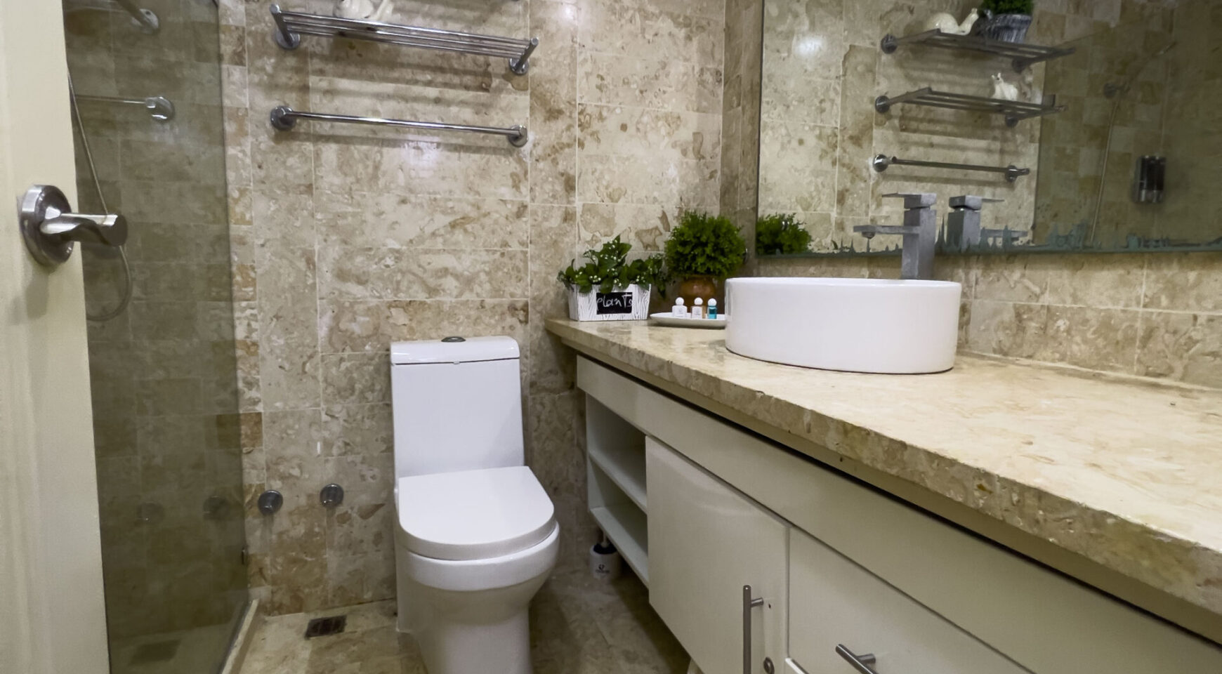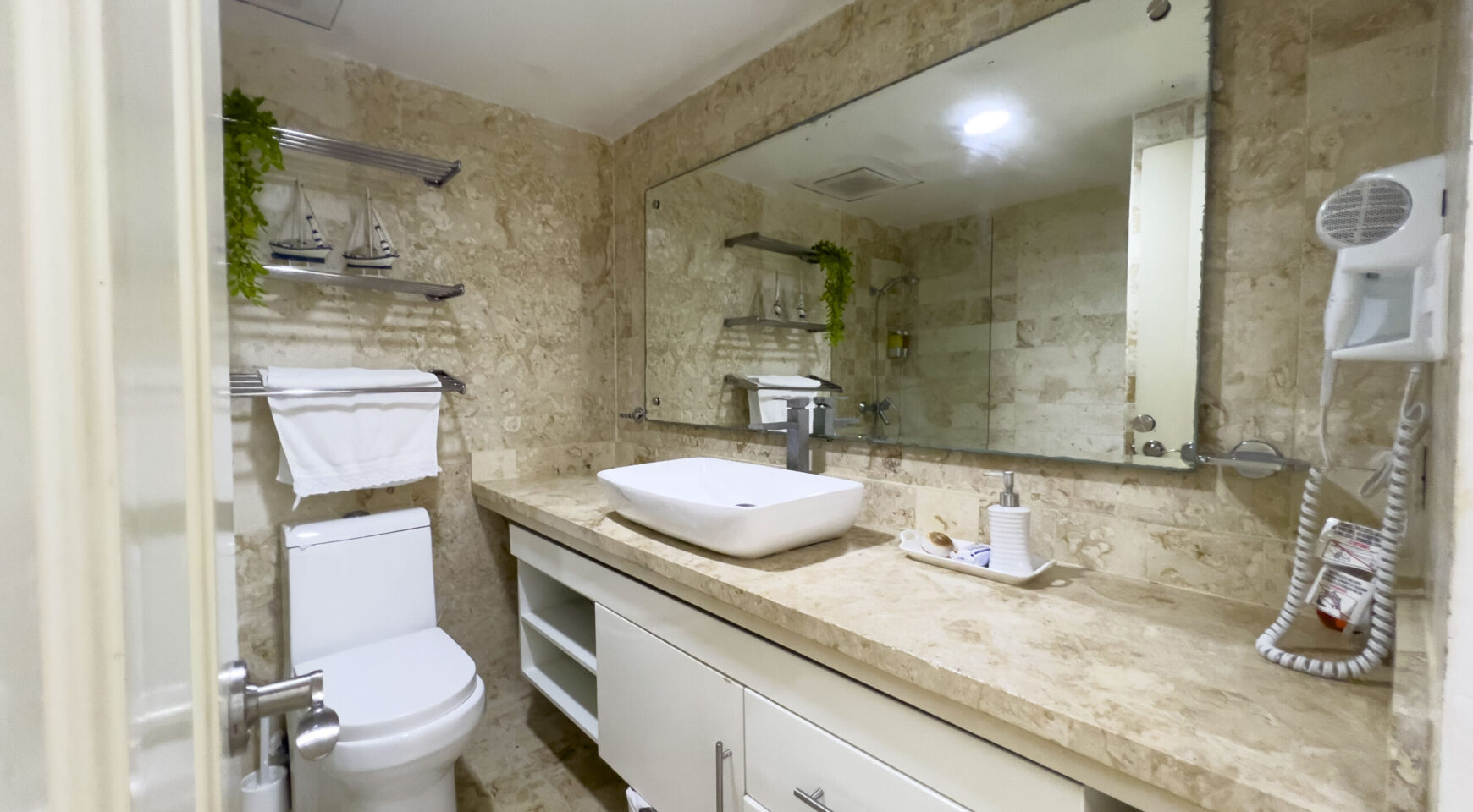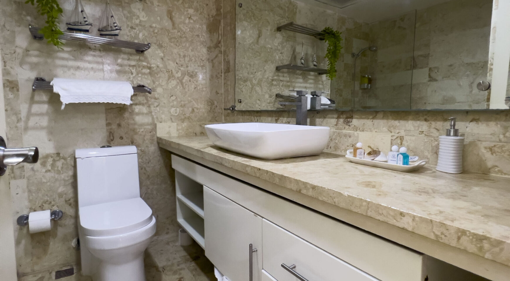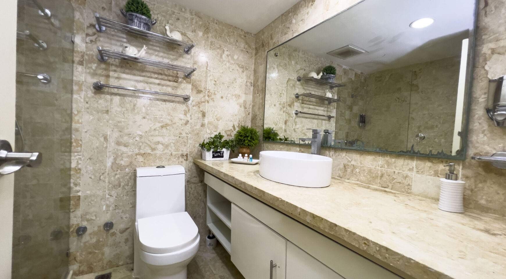 • 3 baños completos en piedra coralina