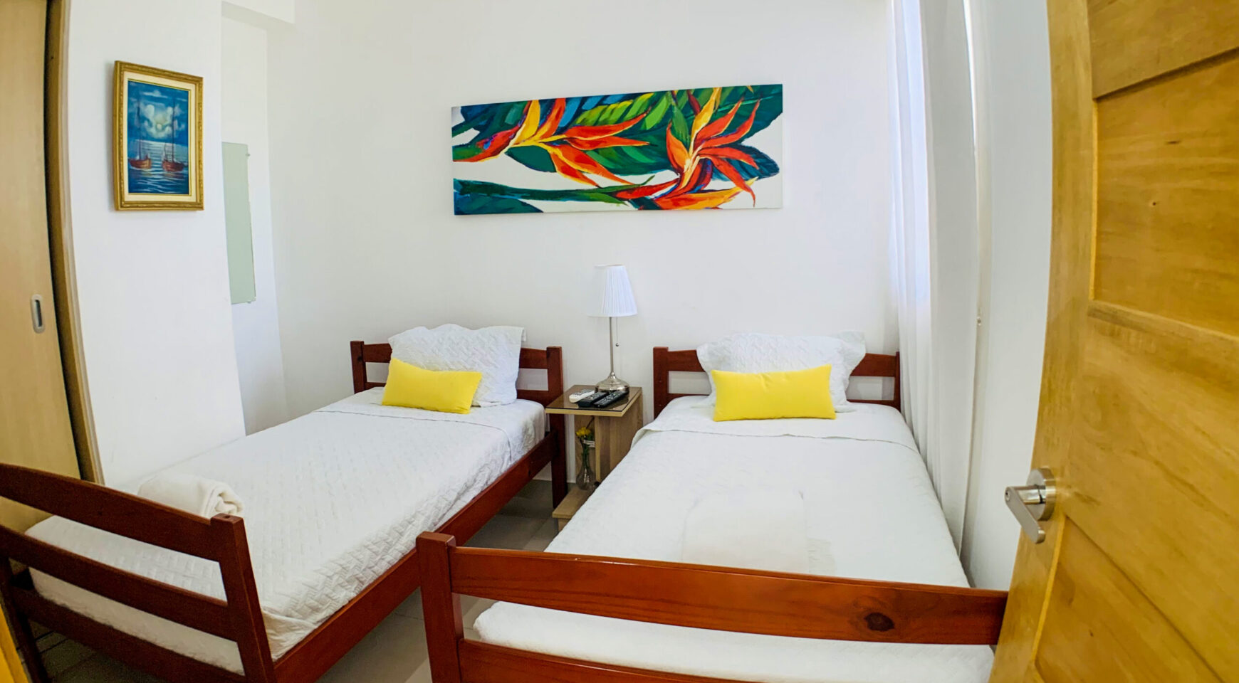 • 2 habitaciones con aire acondicionado, abanico de techo, televisor y closet
