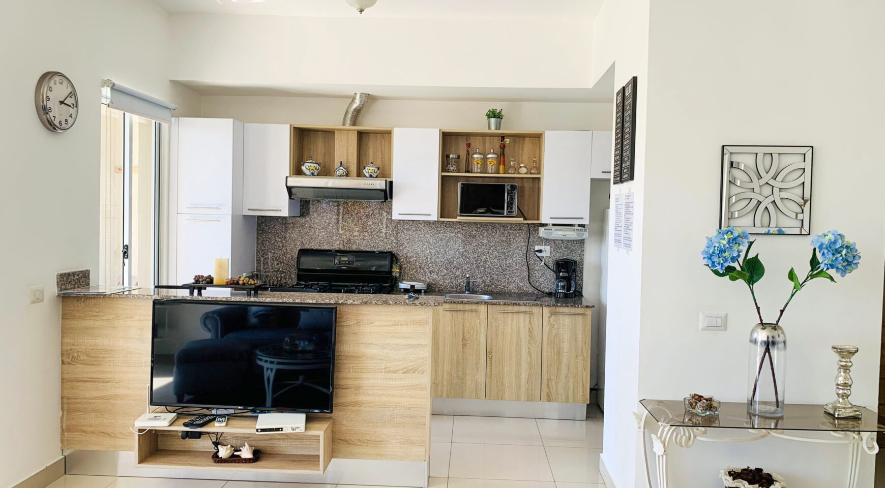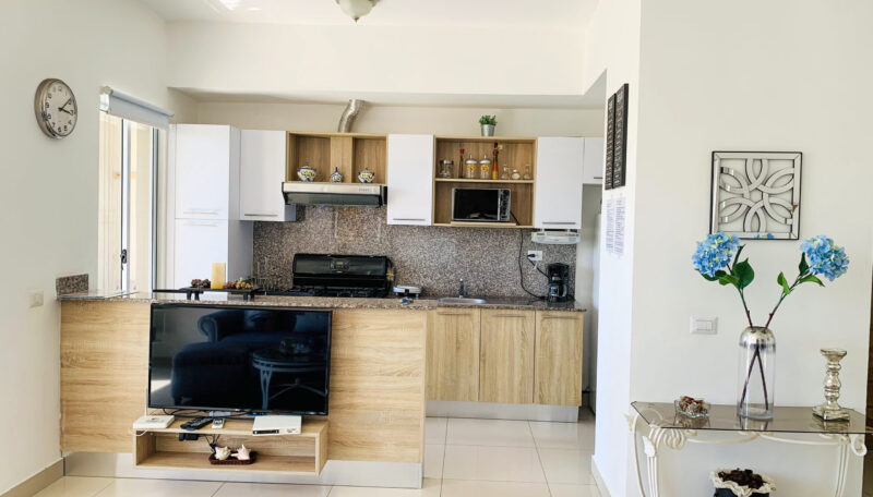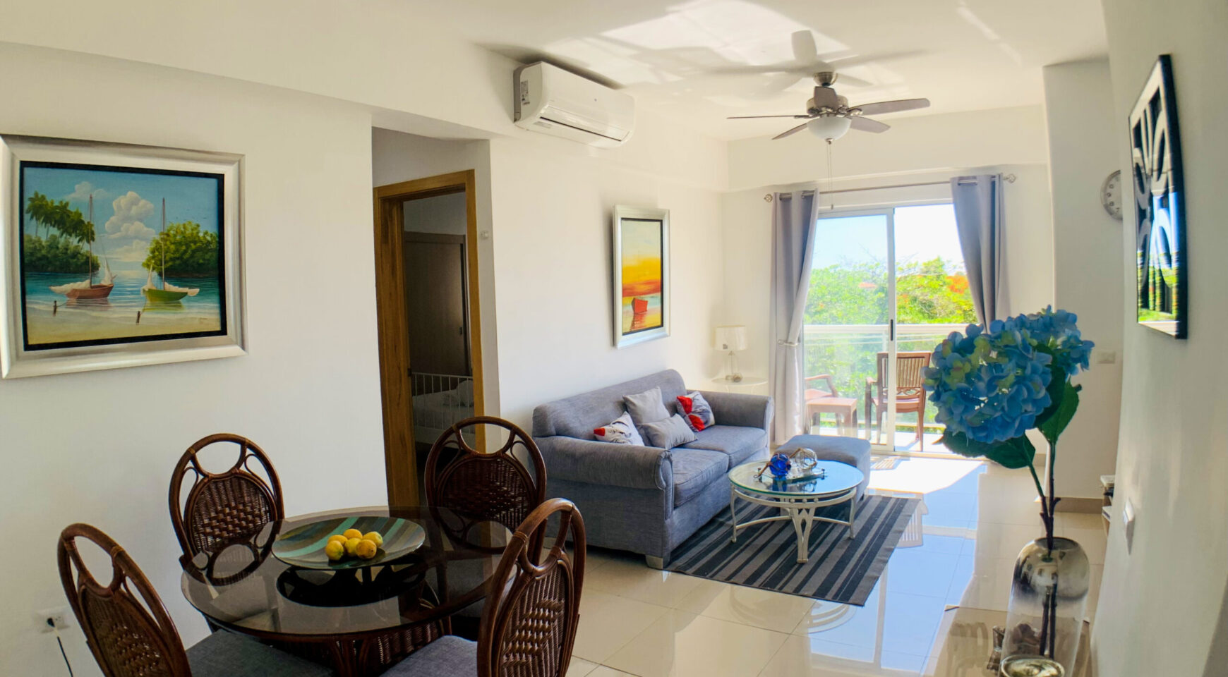 • Sala – comedor con aire acondicionado, abanico de techo y televisor