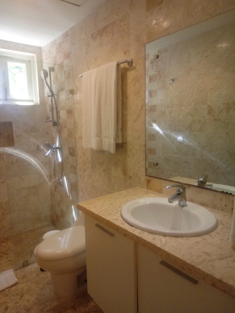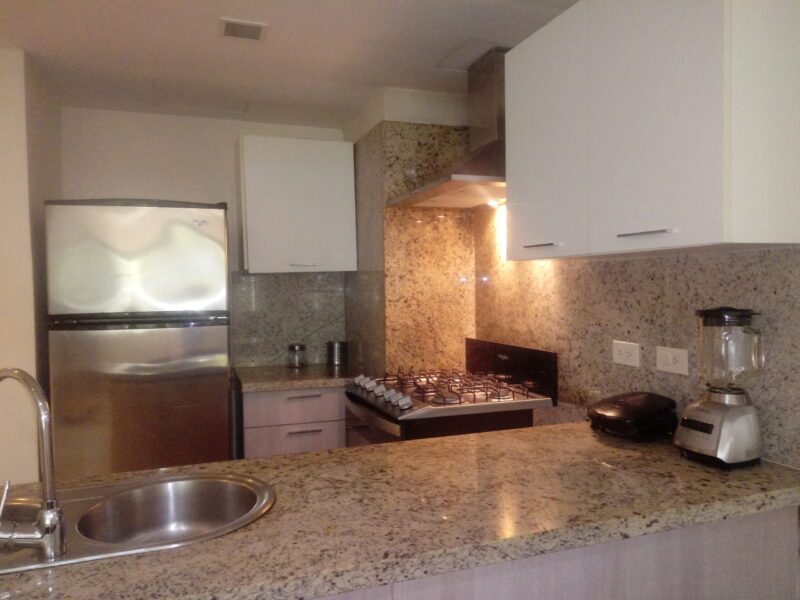 Apartamento en primer nivel, ubicado dentro de resort con 2 habitaciones, 2 baños, sala – cocina, terraza con vista a jardín.
