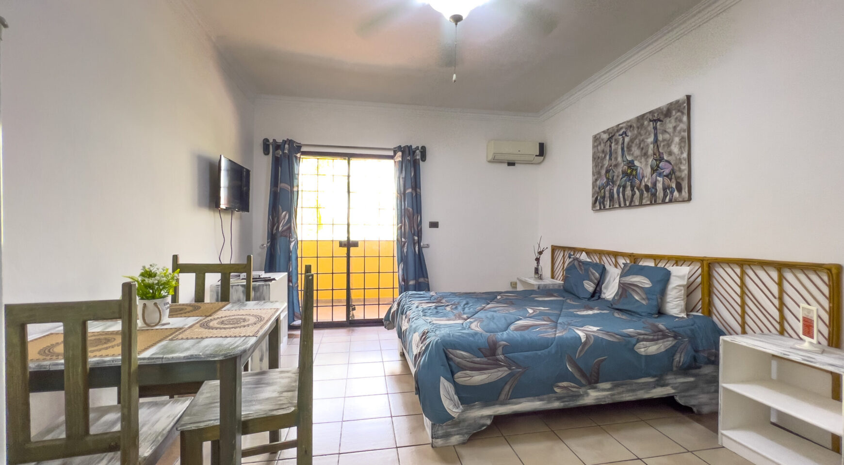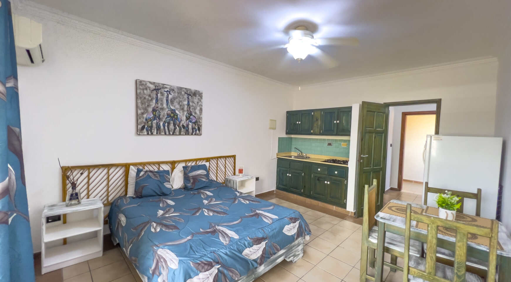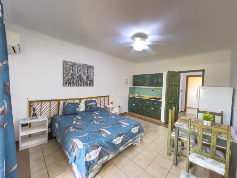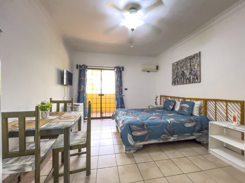 1 habitación tipo estudio con aire acondicionado, abanico de techo y closet