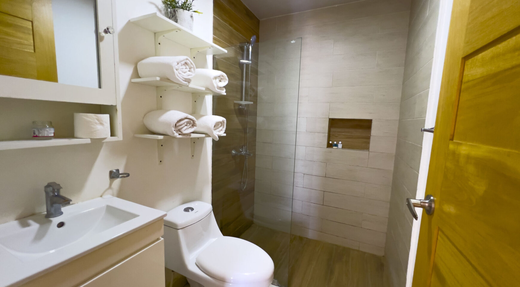 • 2 habitaciones con aire acondicionado, abanico de techo, televisor y closet