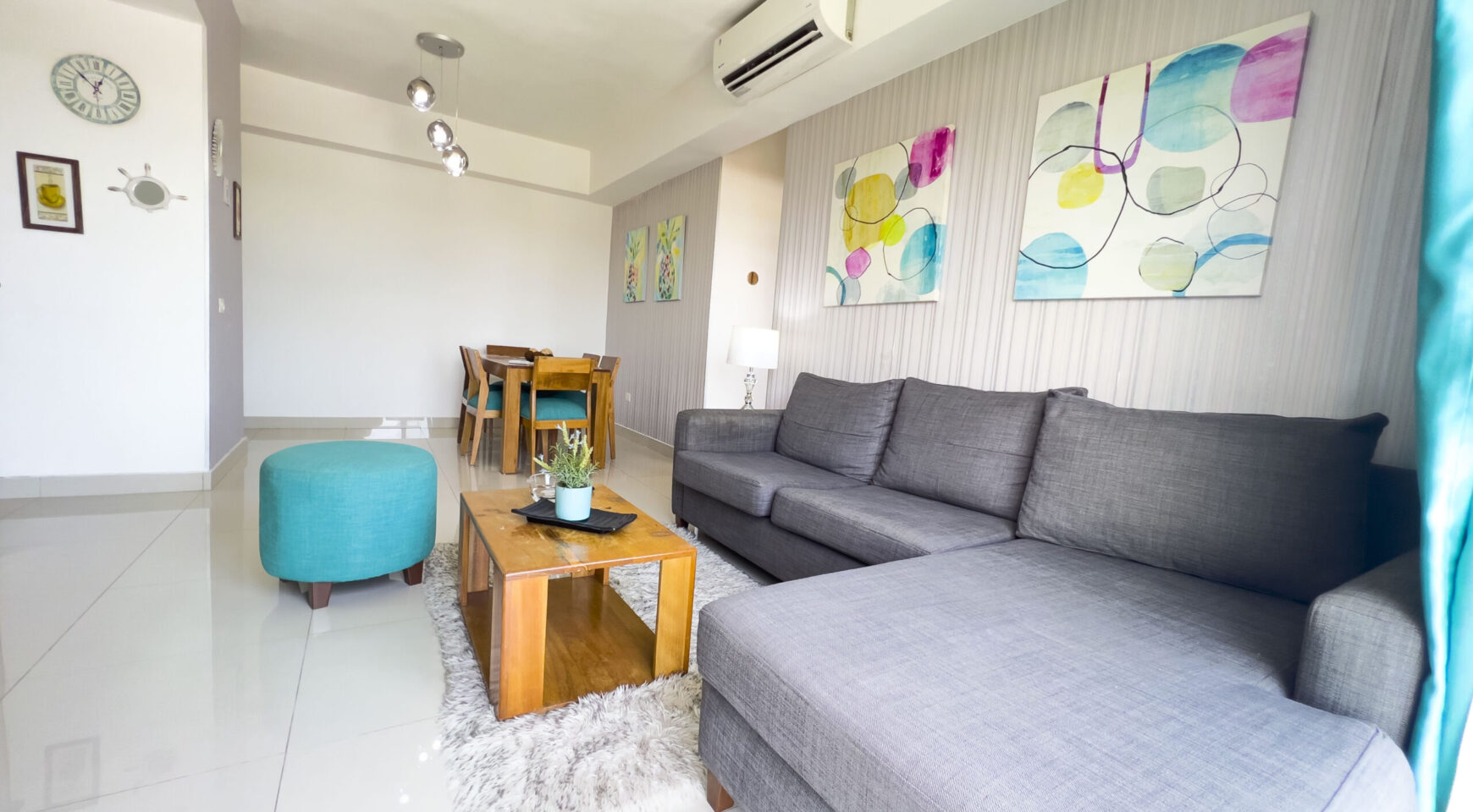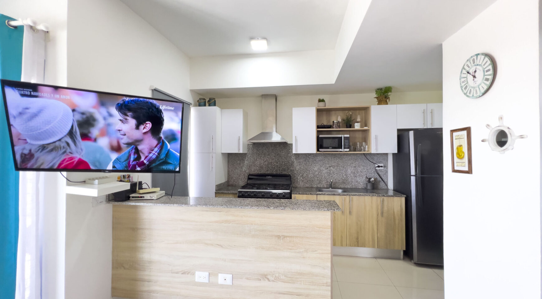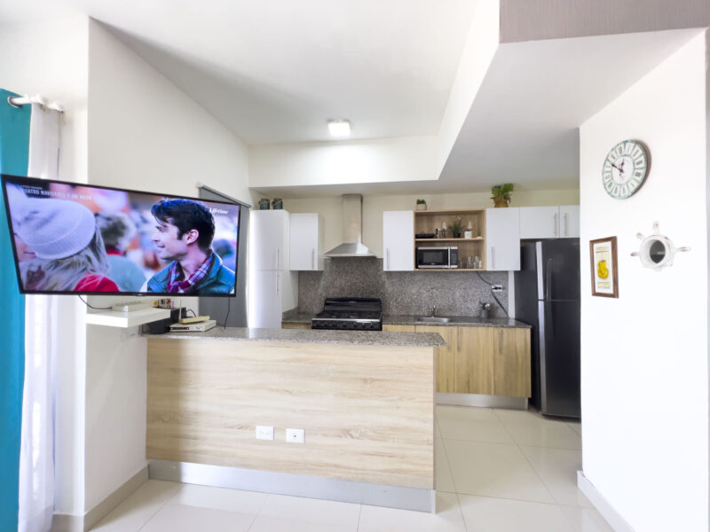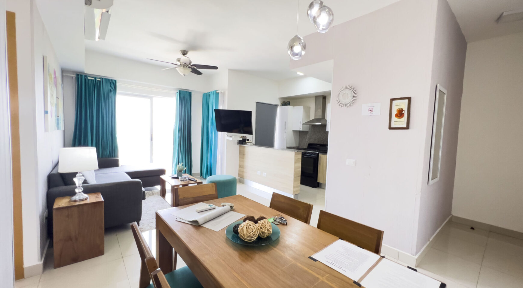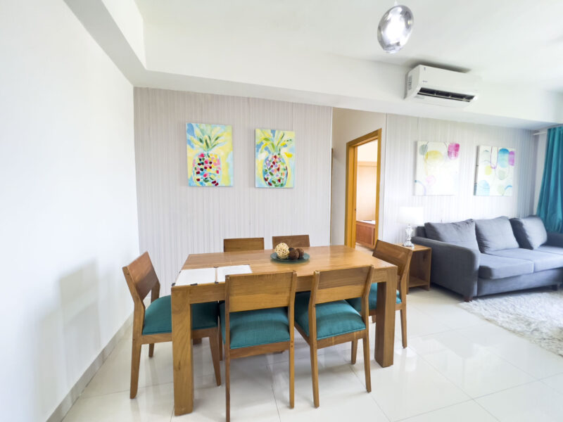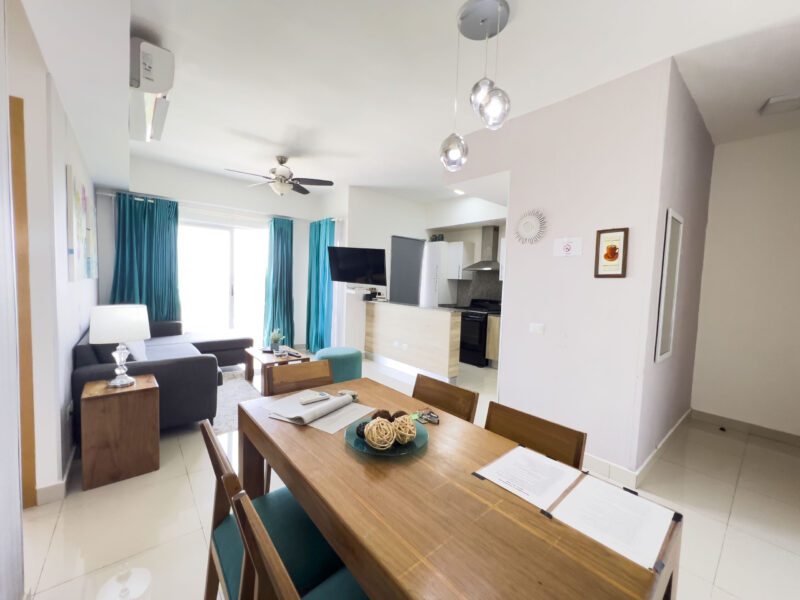 • Sala – comedor con aire acondicionado, abanico de techo y televisor