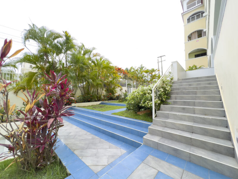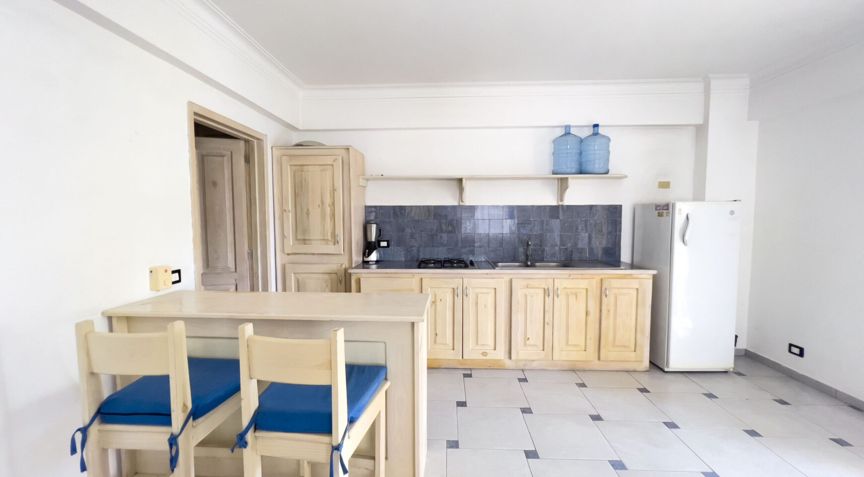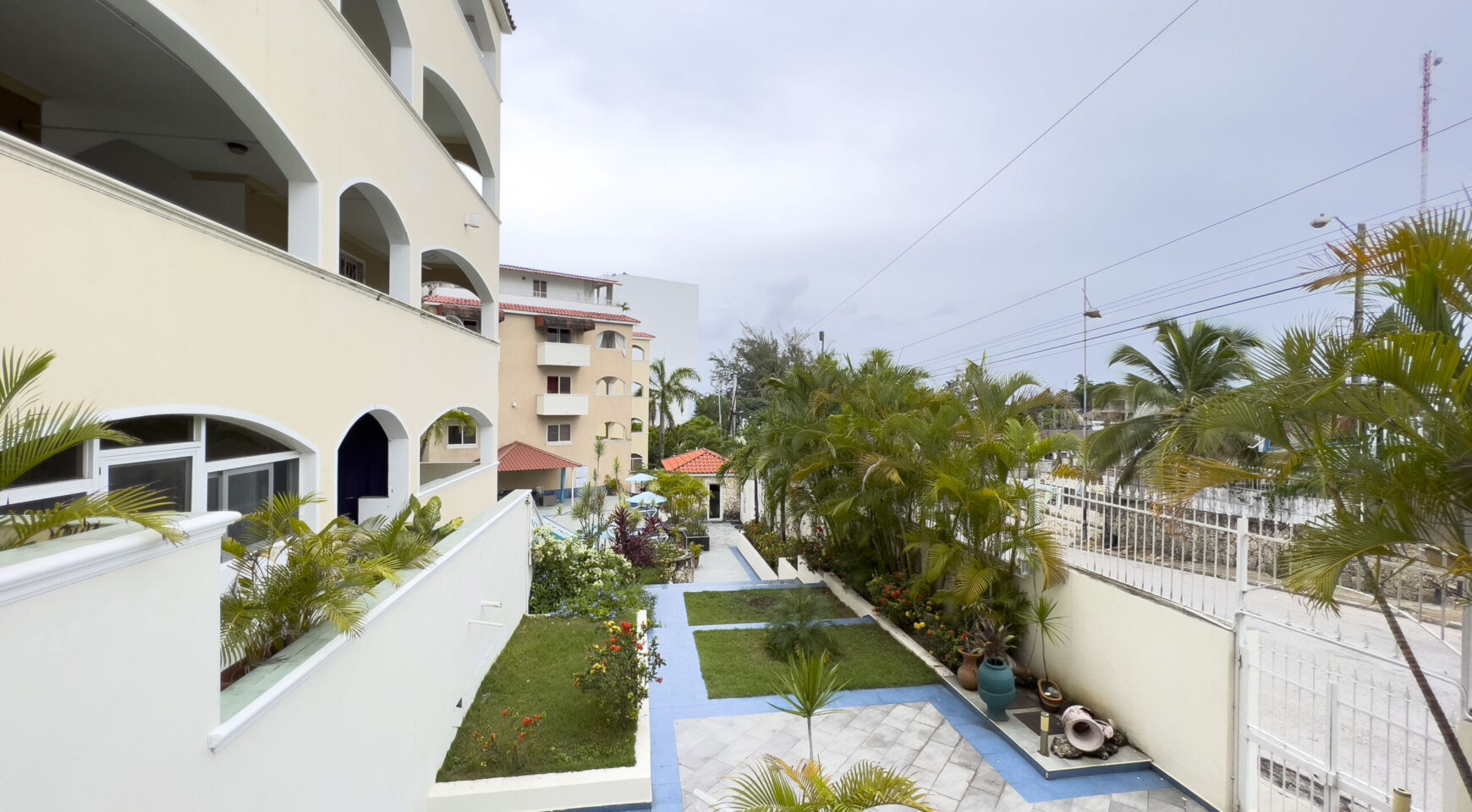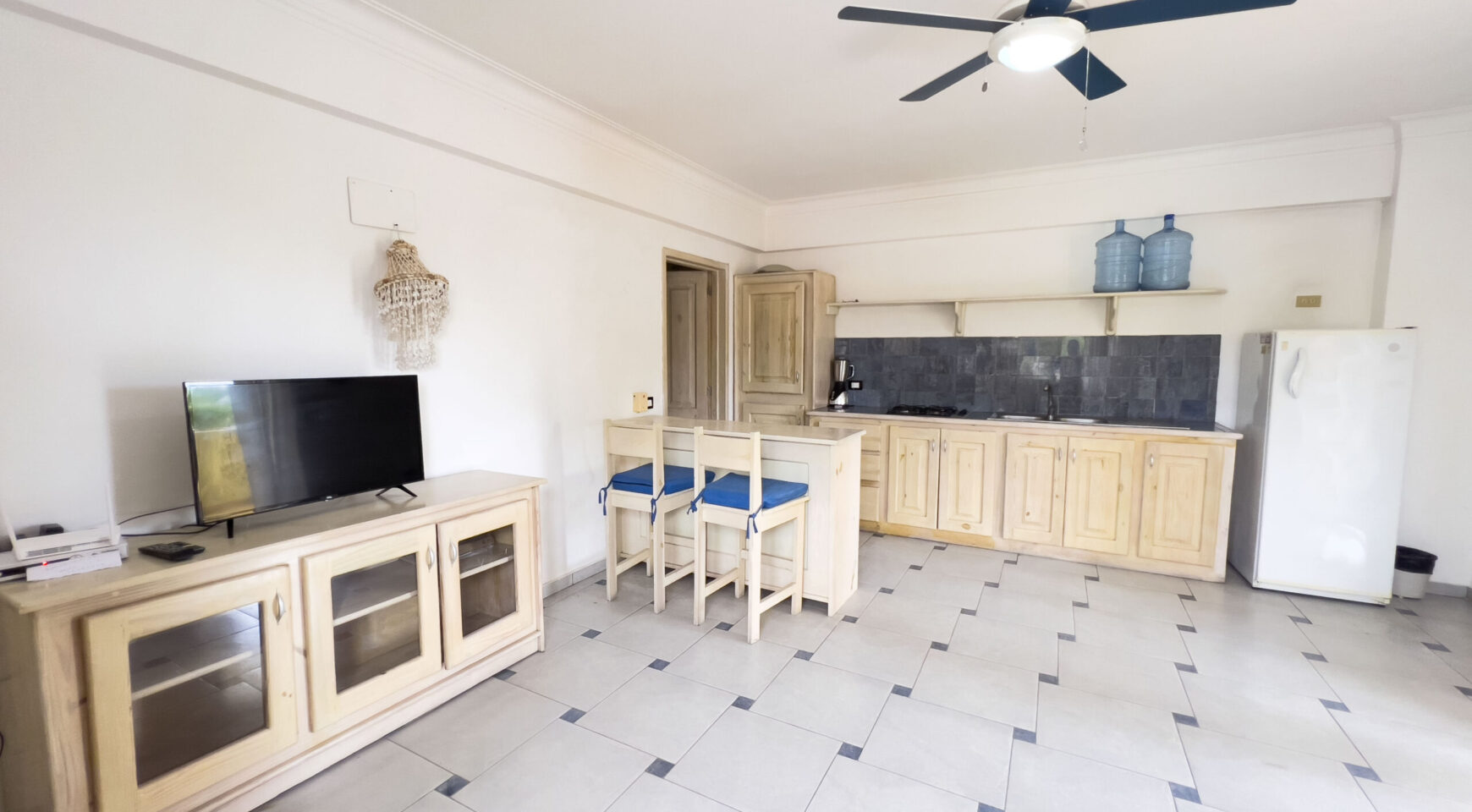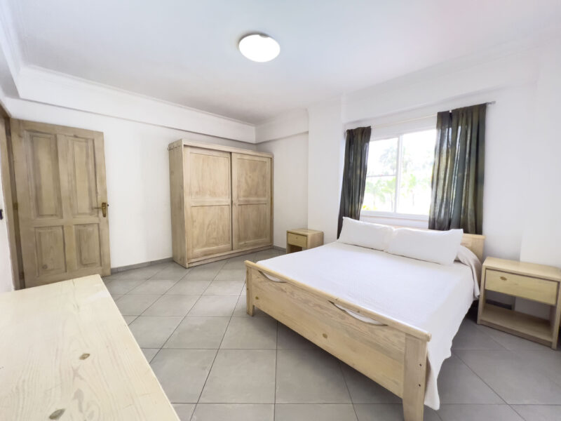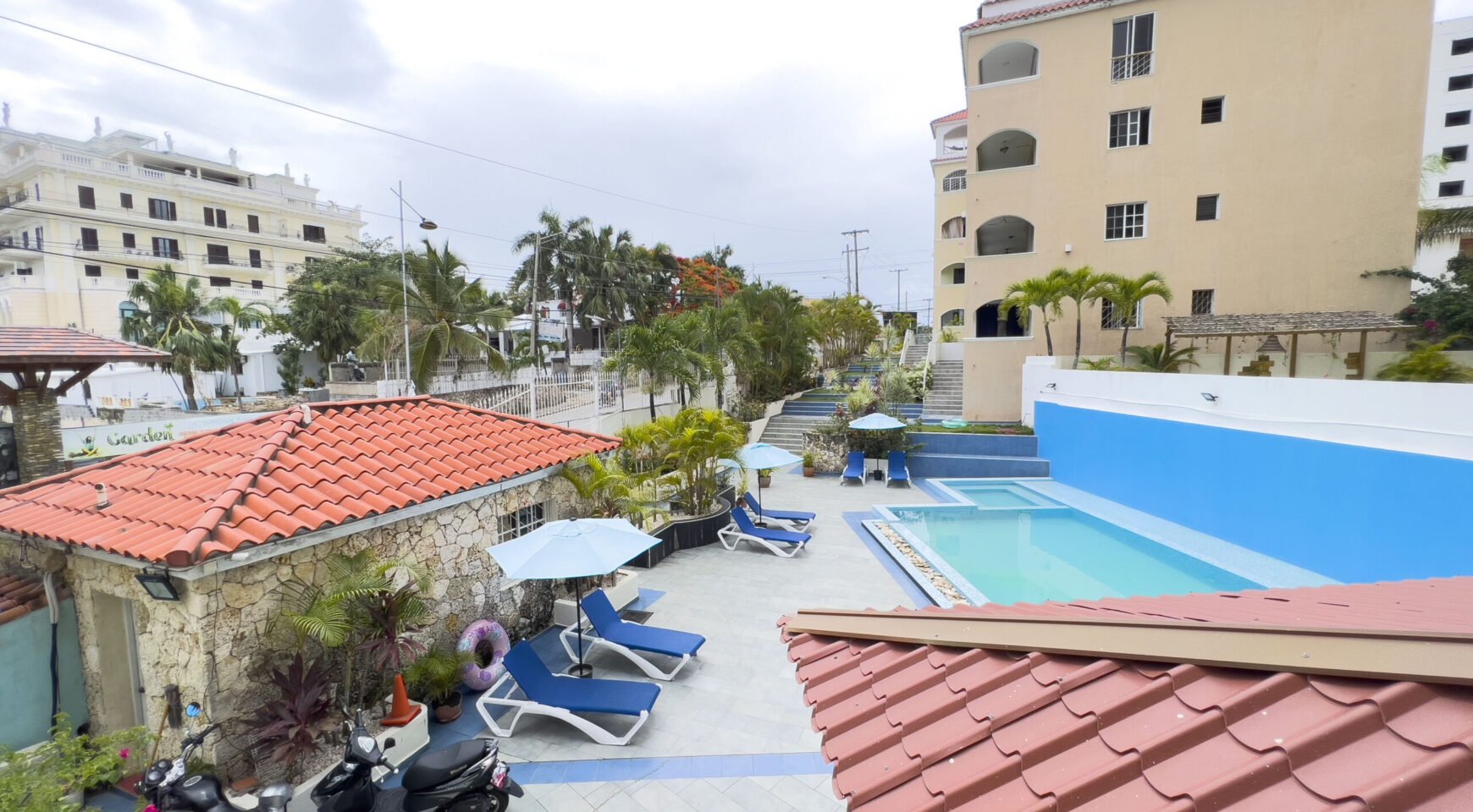 Apartamento cerca de playa,   segundo nivel, 1 habitación, 1 baño, sala – cocina, balcón con vista calle y piscina.