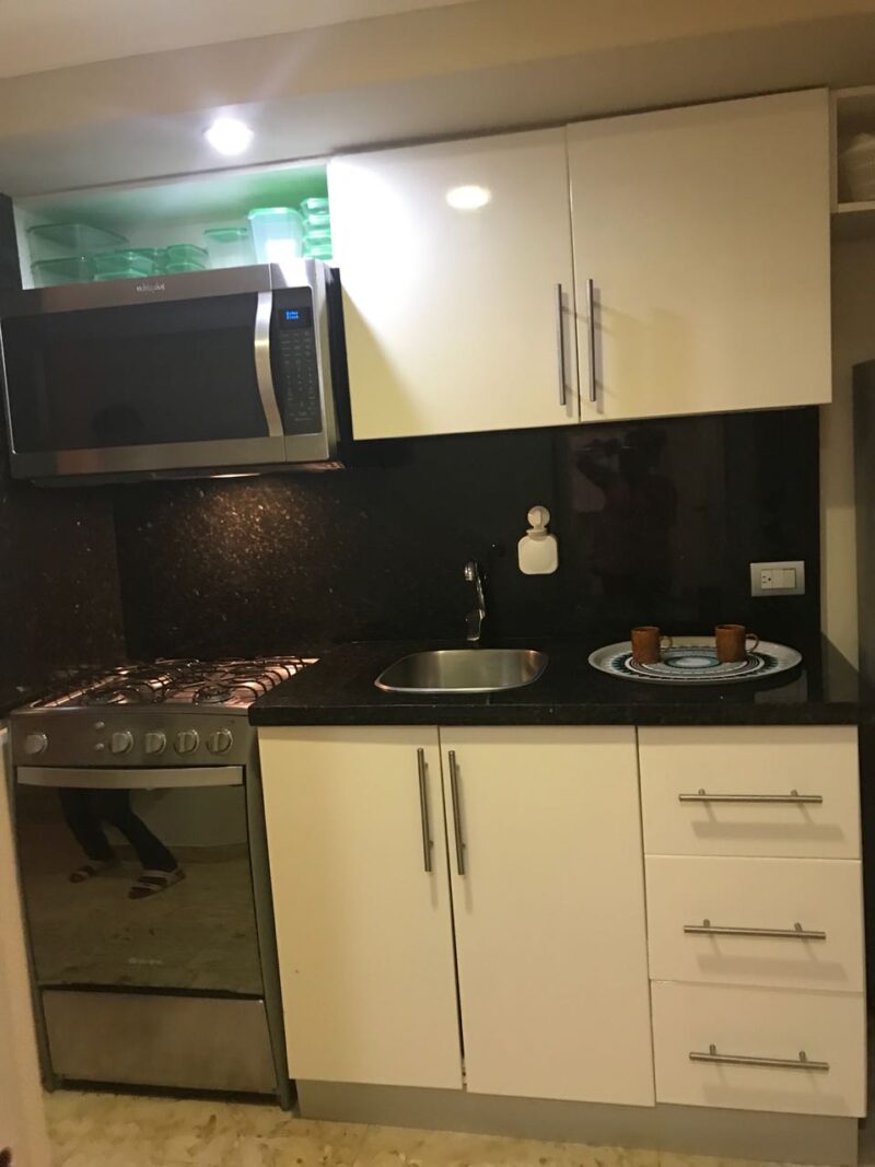 Apartamento tipo mono-local, en primer nivel, ubicado dentro de resort, 1 habitación con cocina, 1 baño  terraza con jardín privado