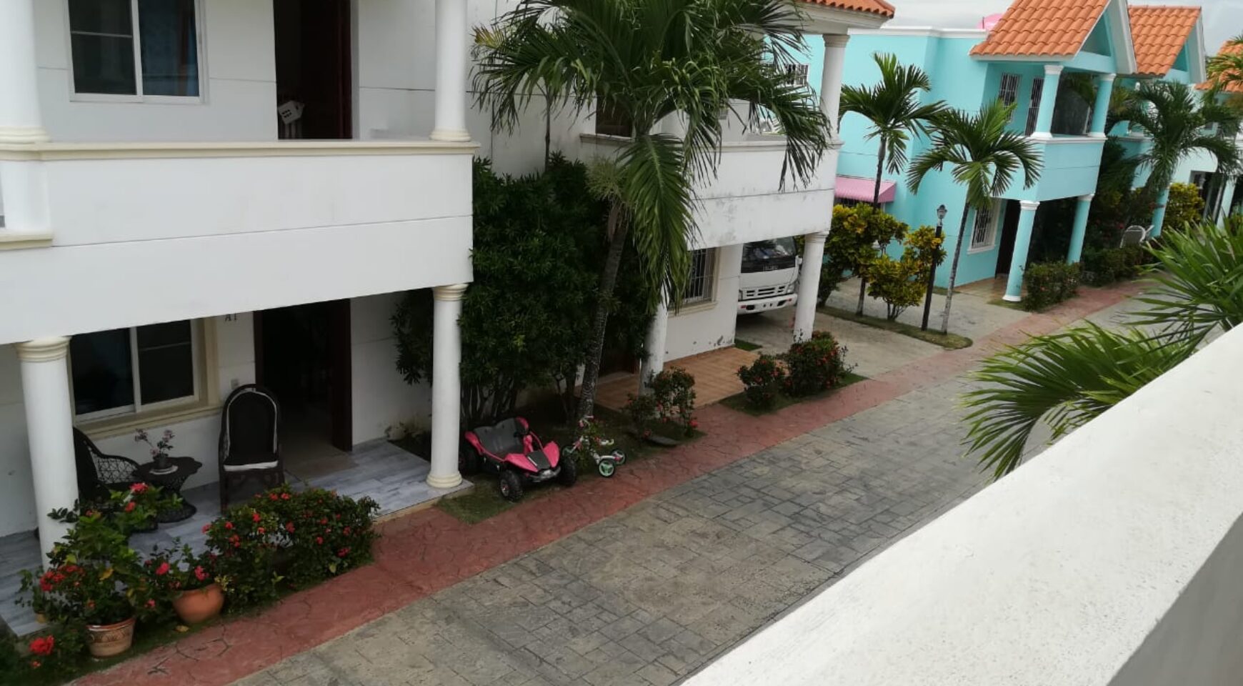 Segundo nivel: 2 habitaciones ( principal con balcón vista al residencial), 2 baños.