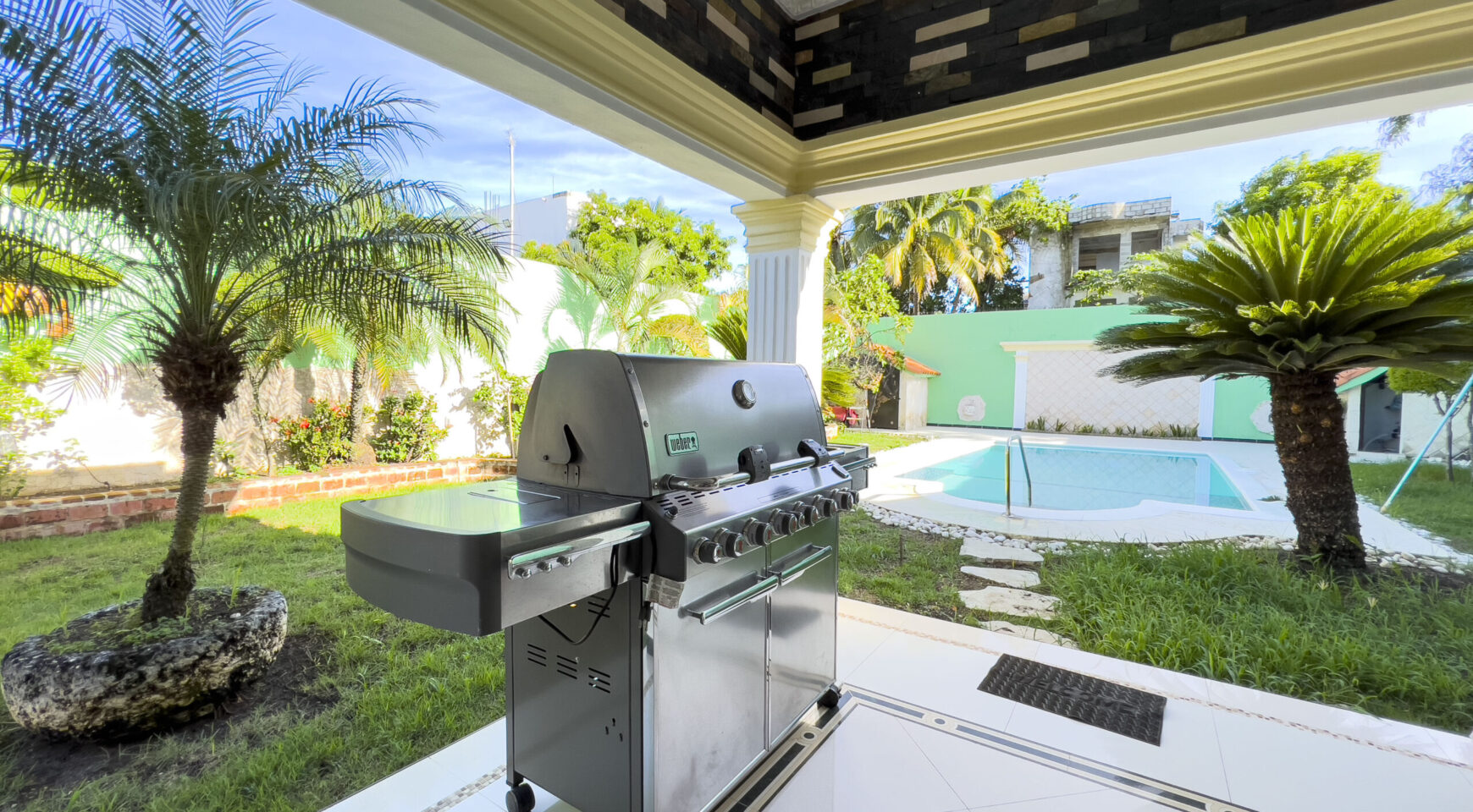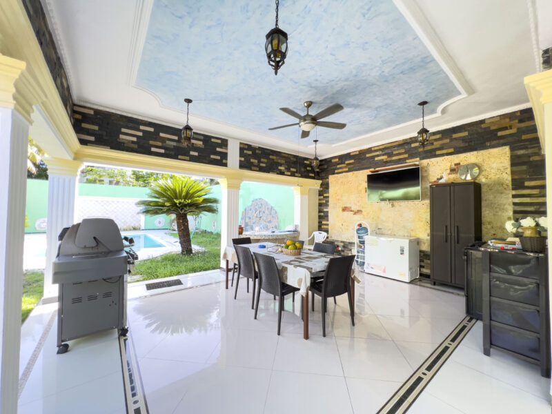 Ubicada en área residencial con calles asfaltadas e iluminada, a pocas esquinas de la playa en Boca Chica, cerca de la autopista de las américas, cerca de restaurantes, farmacias, bancos, a 15 minutos del aeropuerto internacional las Américas y 30 minutos de Santo Domingo.