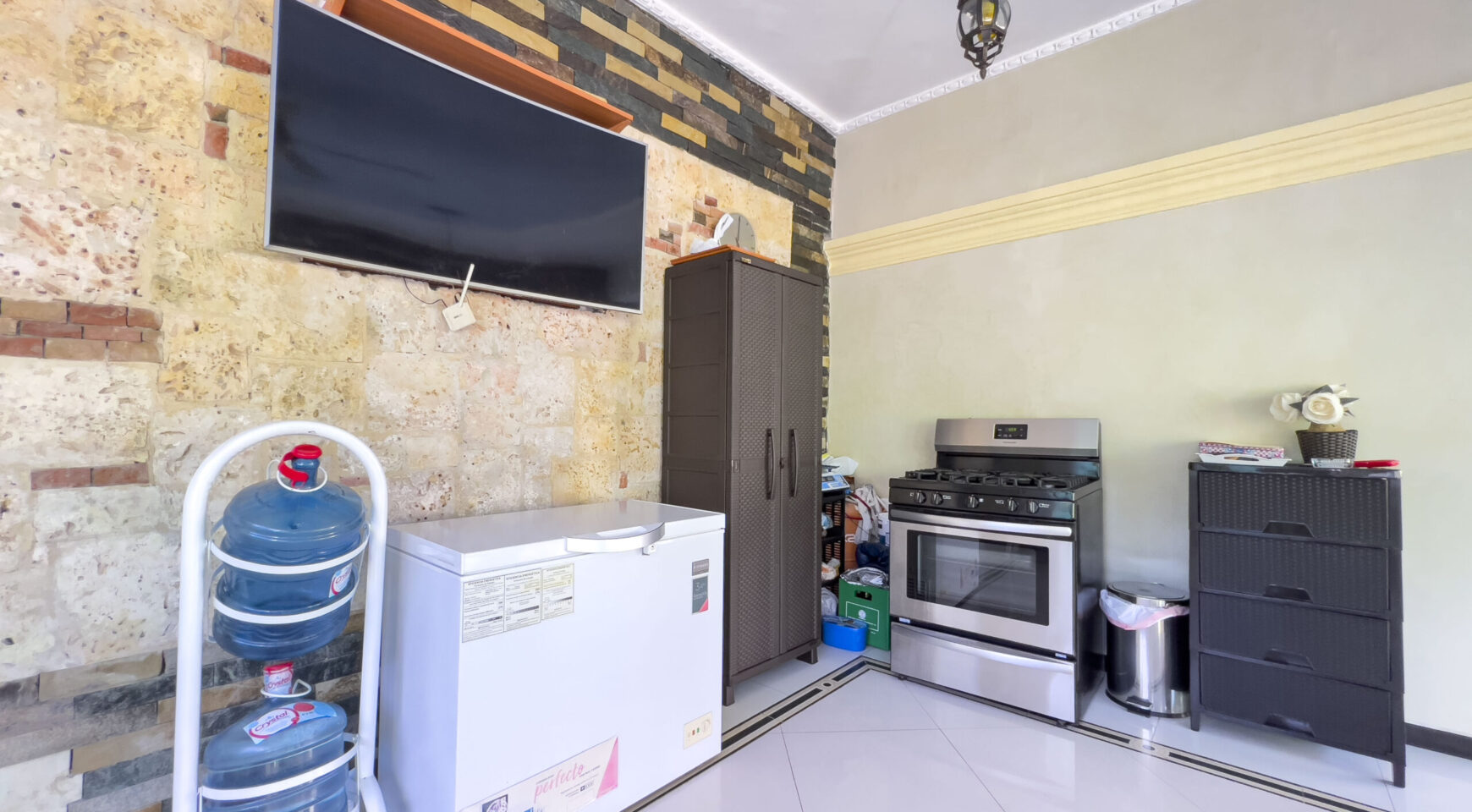 Casa construida en primer nivel totalmente independiente, semi-amueblada, sus paredes terminadas en estuco veneciano, amplia zona social, cuenta con una habitación con baño privado, una segunda habitación amplia con closet, dispone de un amplio baño común con tina,