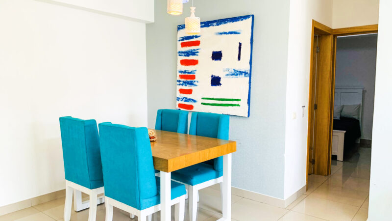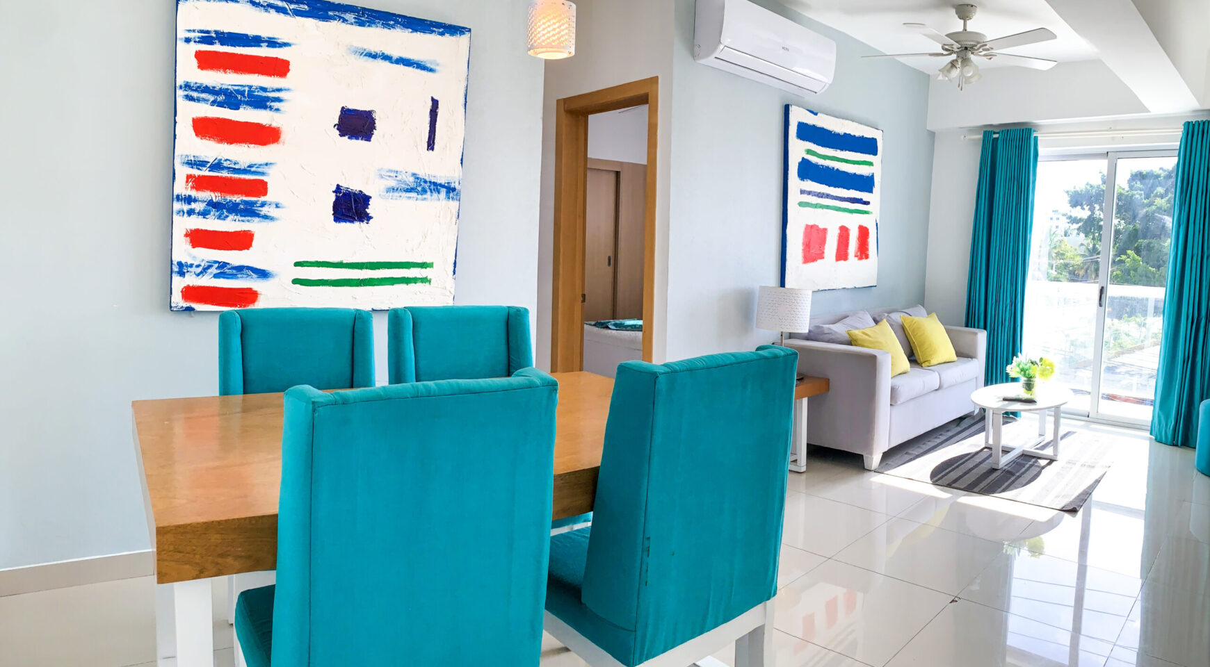 • Sala – comedor con aire acondicionado, abanico de techo y televisor