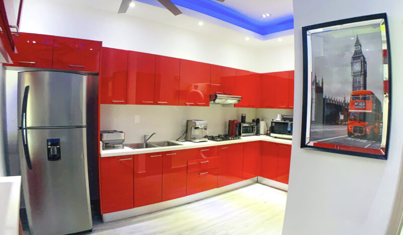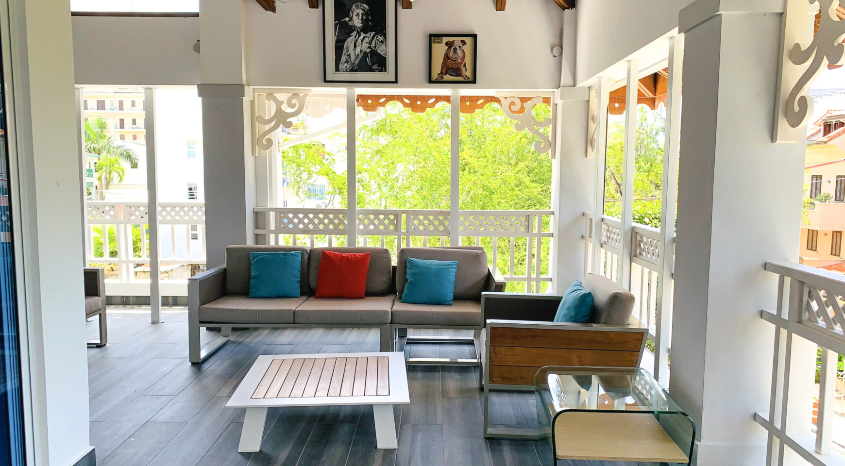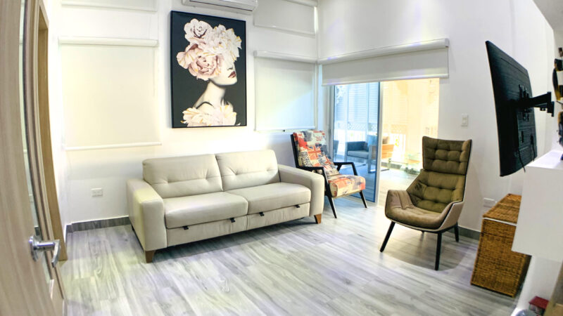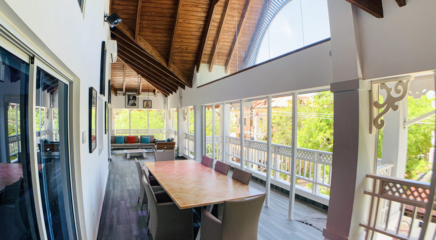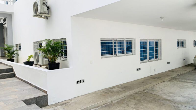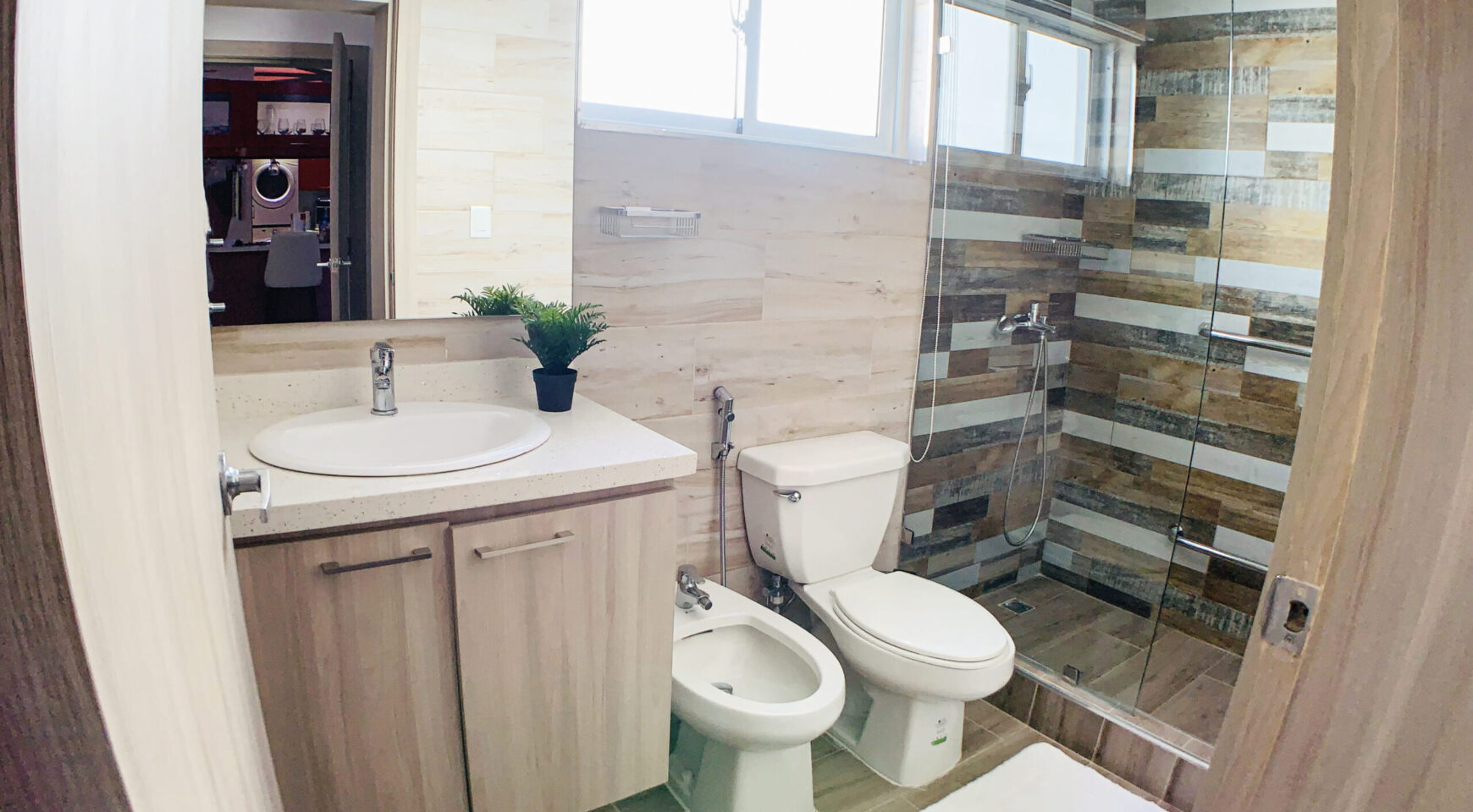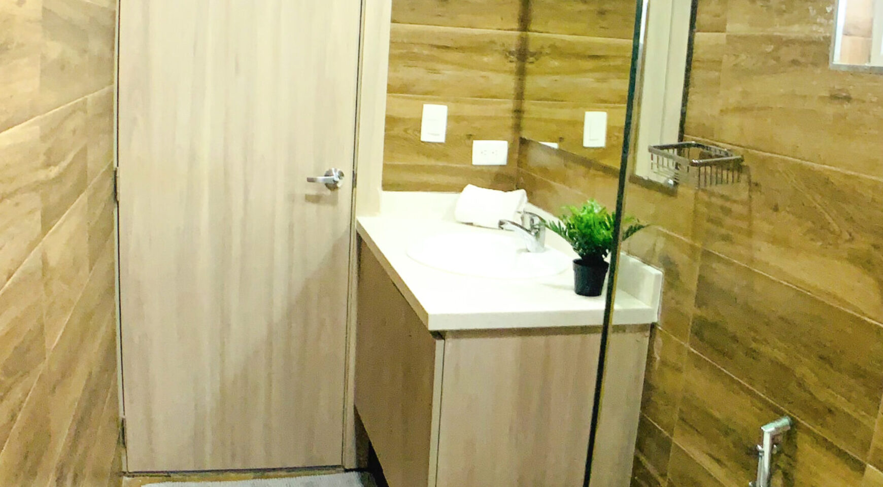 Techos altos en la terraza hechos en pino americano tratado con acabados con diferentes formas Parqueo privado 21.85 m2