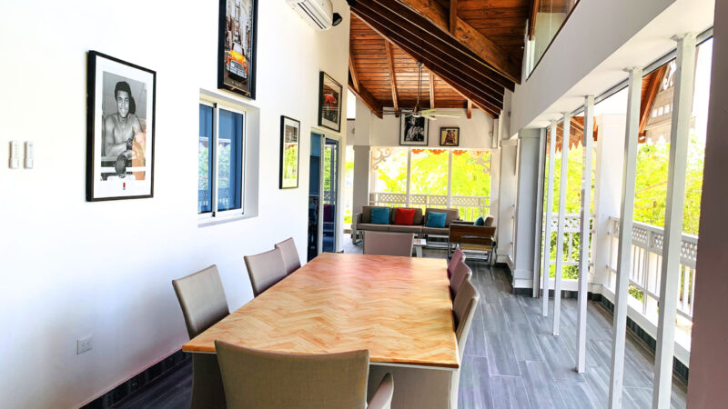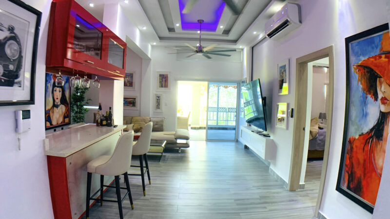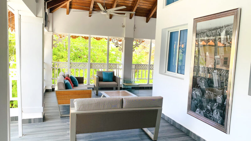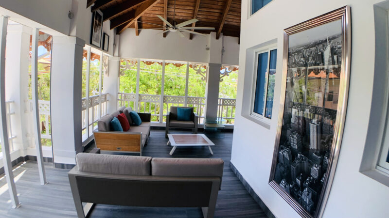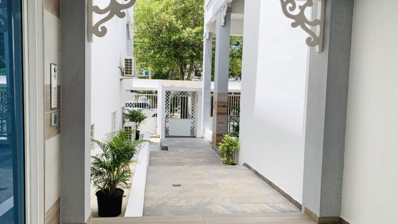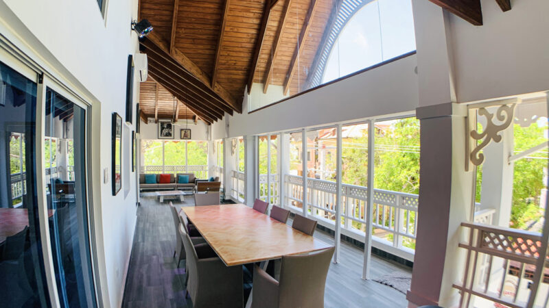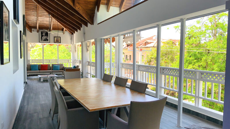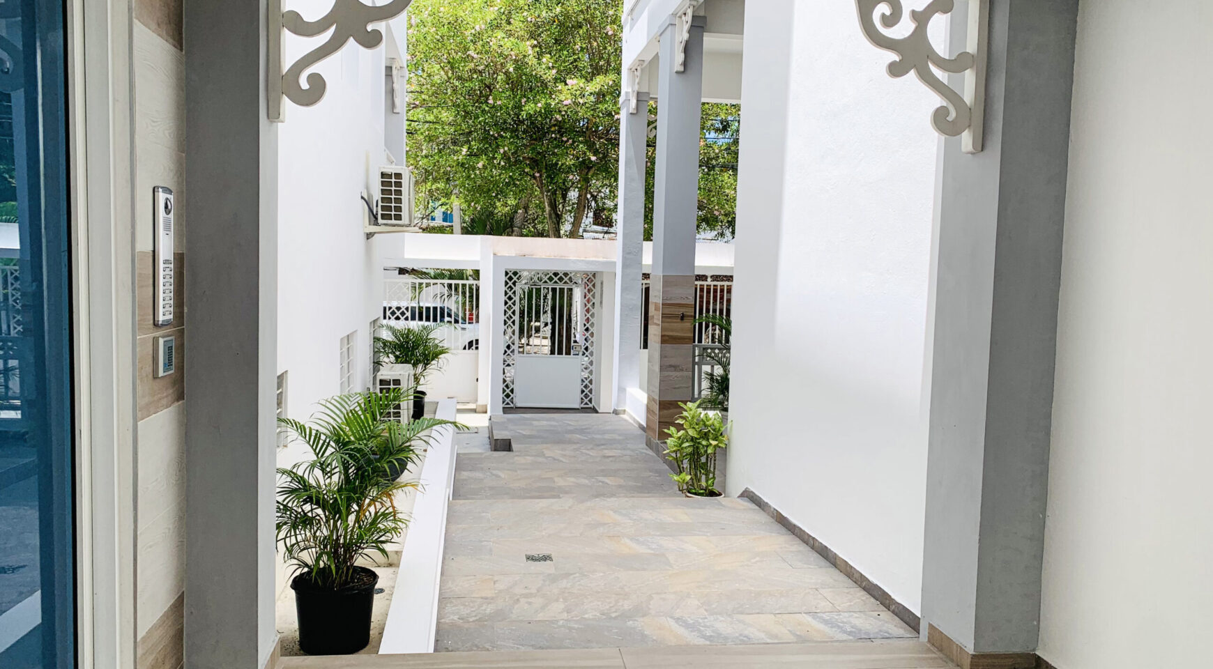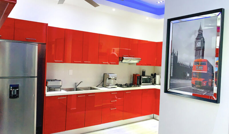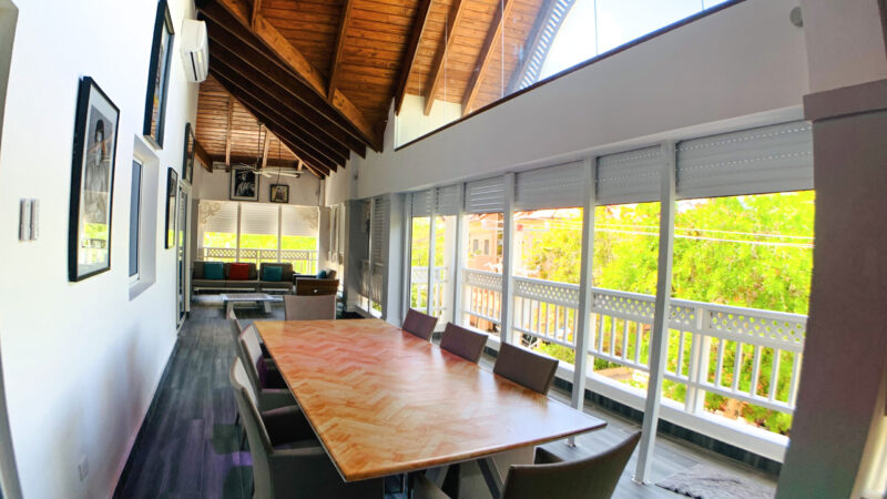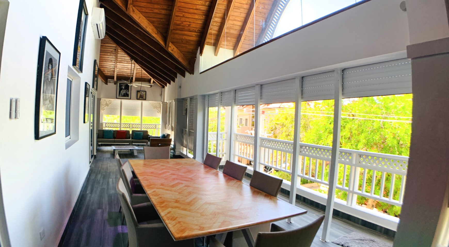 Techos altos en la terraza hechos en pino americano tratado con acabados con diferentes formas Parqueo privado 21.85 m2