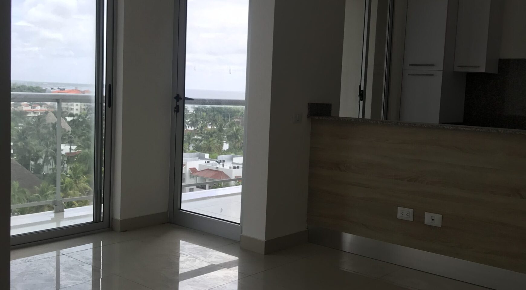 Luminoso apartamento tipo pent house, 2 habitaciones, 1 baño, sala, comedor, cocina, terraza privada con vista al mar.