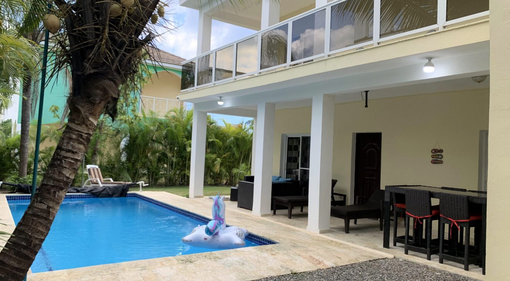Dos niveles, 4 habitaciones, 3 baños, sala, comedor, cocina, piscina privada, casa ubicada dentro de residencial privad0 con amplias zonas verdes, piscina común dentro del residencial, unos de los pocos residenciales en la zona que todas su sistema eléctrico es soterrado.